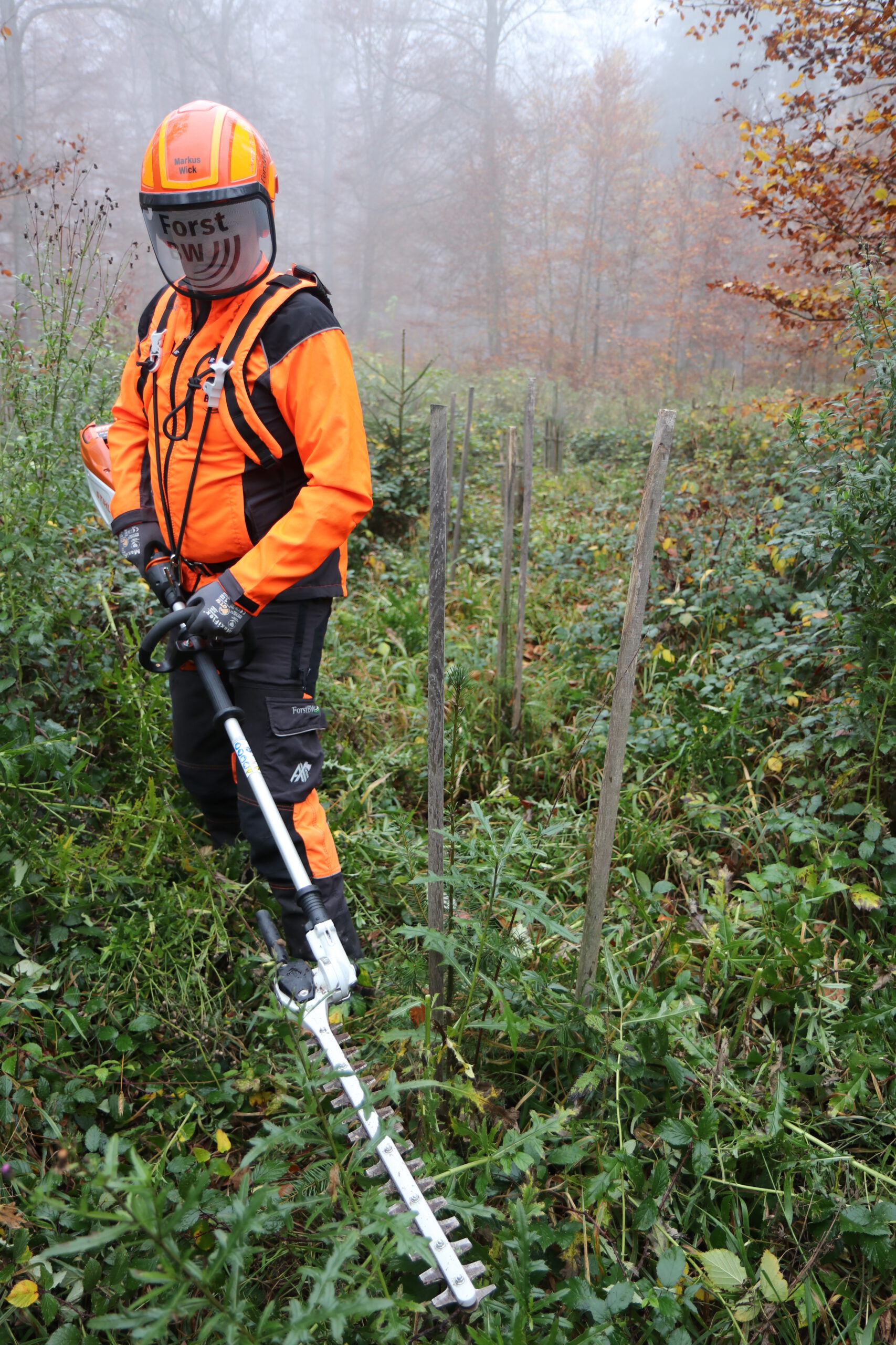 Motorsägen und Freischneider gehören zum Arbeitsalltag gerade im jungen Wald.