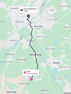 Der nächstgelegene Bahnhof ist der Hauptbahnhof Ulm.